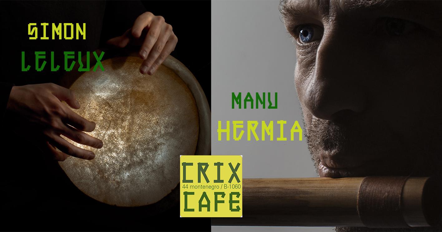 Nous vous proposons de venir découvrir le fruit de la rencontre en Manu Hermia et Simon Leleux. Tous deux explorateurs et improvisateurs, ils composent ensemble depuis une année un répertoire issus de leurs diverses influences: jazz, indienne, arabe, Balkan... Une vision globale d'une musique inspirée de traditions qui se rapprochent, et qui nous rapprochent.